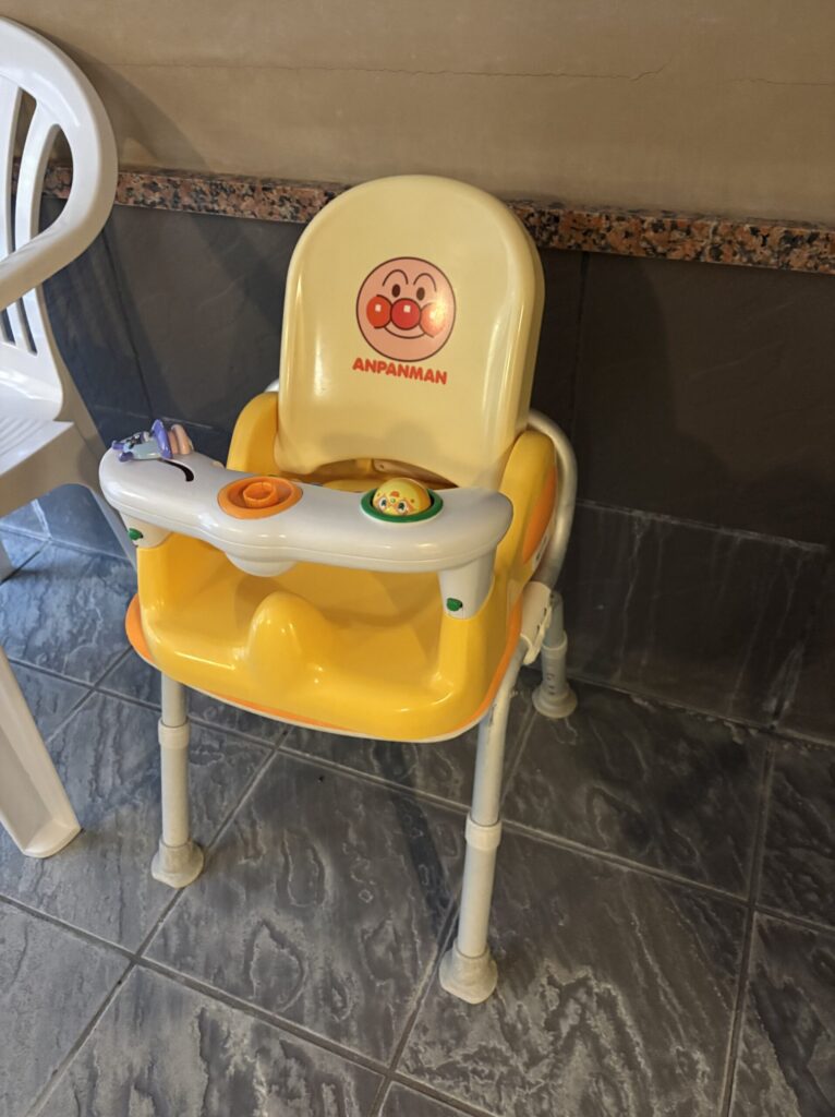 バスチェアはアンパンマン仕様で、上の子が「使いたい!」と大喜びでした(実際に使うのは下の子ですが)。