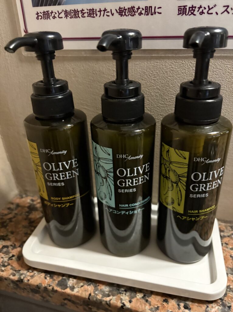 シャンプー・コンディショナー・ボディソープはDHCのもので、日帰り温泉にありがちな「髪がきしむ感じ」もなく、使い心地は良好でした。