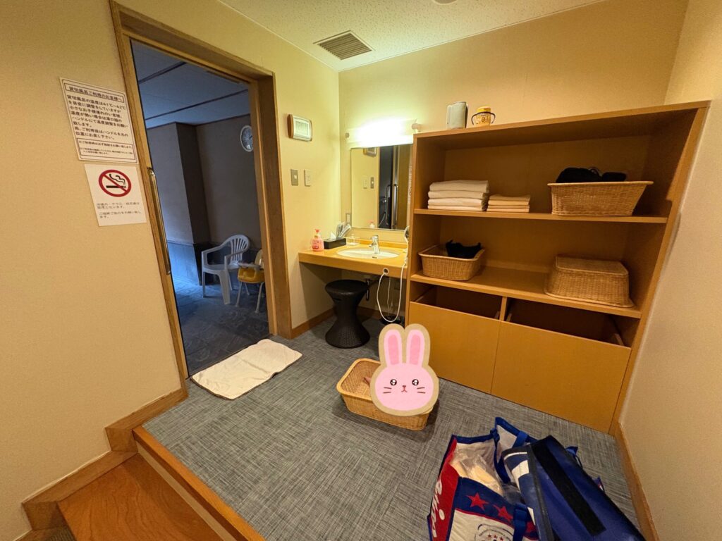 脱衣所には、子ども分を含めた人数分のバスタオルとフェイスタオルが用意されています。