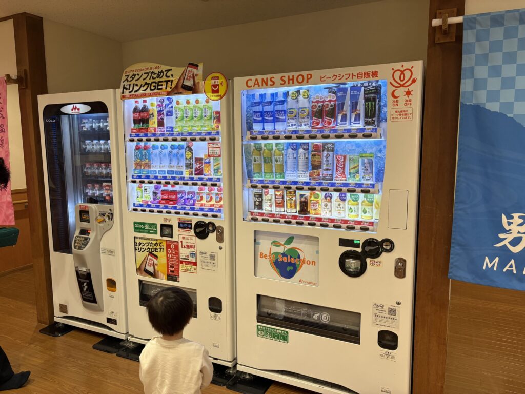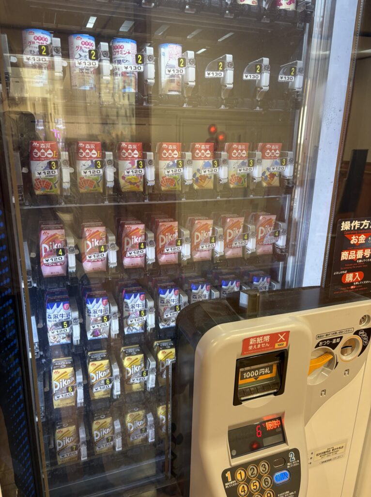 館内の自販機には、牛乳や乳性飲料なども販売されています。