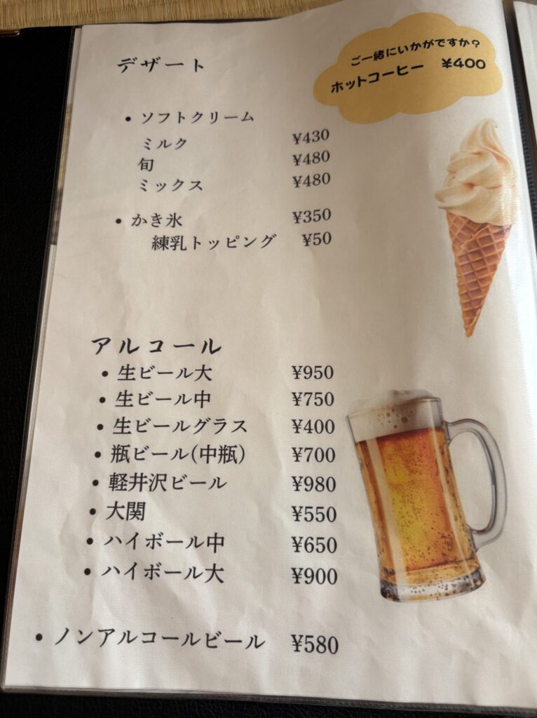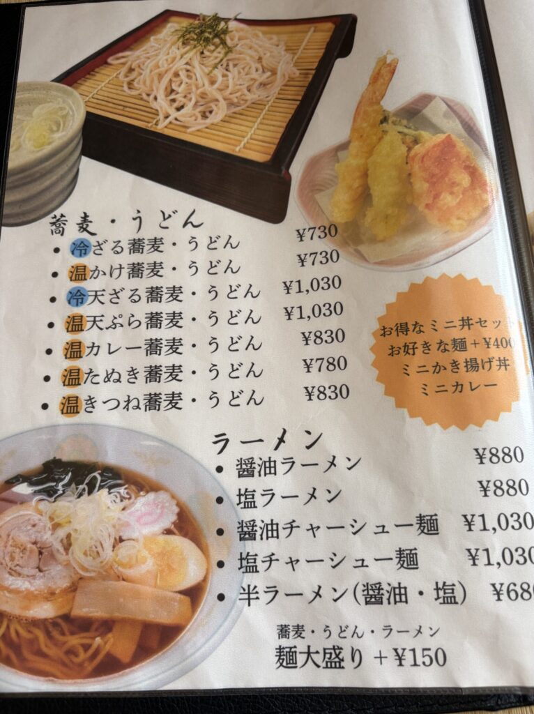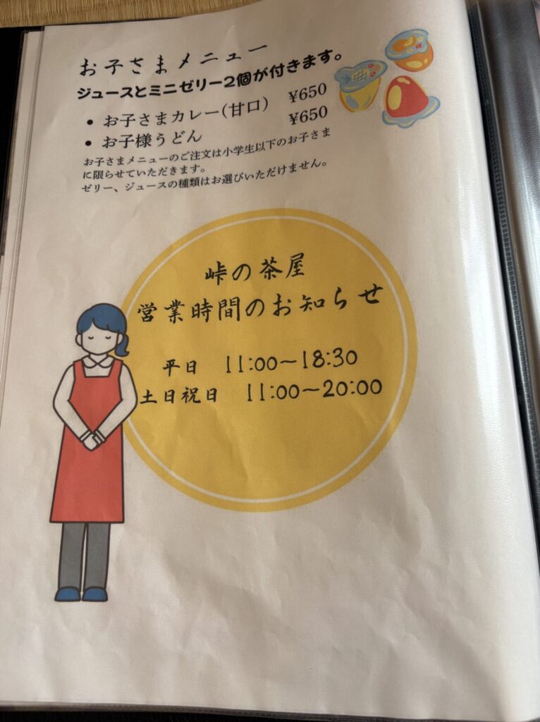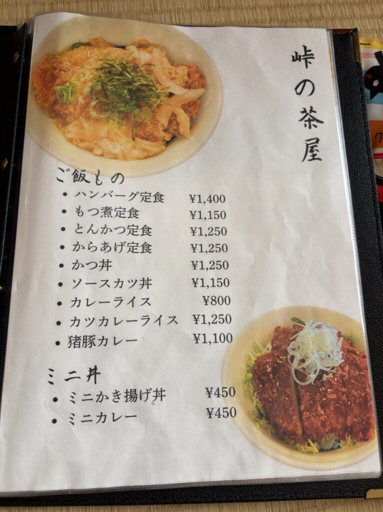 館内には「峠の茶屋」という食事処があり、以下のようなメニューを頼むことができます。